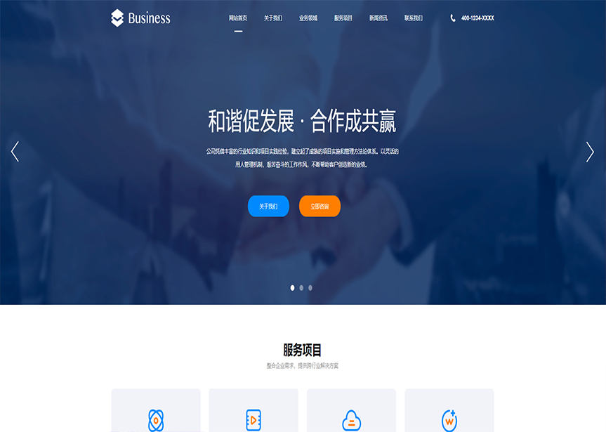 模板名稱:(帶手機版數(shù)據(jù)同步)自適應(yīng)藍色商業(yè)類通用網(wǎng)站模板