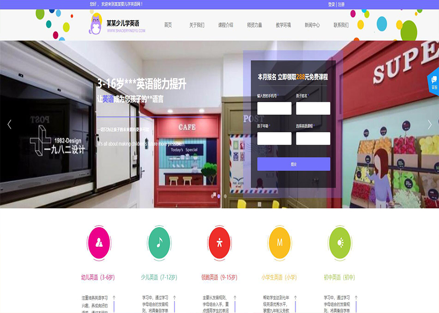 模板名稱:(帶手機版數(shù)據(jù)同步)自適應(yīng)少兒英語學(xué)校網(wǎng)站模板