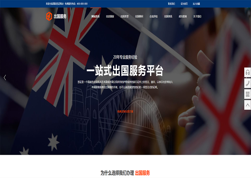 模板名稱:(帶手機(jī)版數(shù)據(jù)同步)自適應(yīng)商業(yè)類出國(guó)服務(wù)網(wǎng)站模板