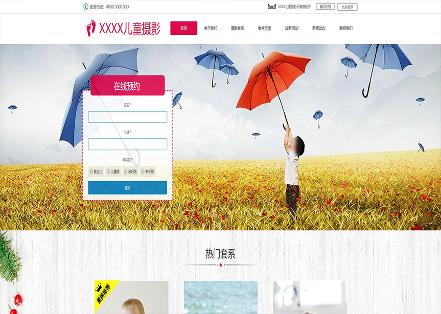 模板名稱:(帶手機(jī)版數(shù)據(jù)同步)自適應(yīng)攝影沖印類兒童攝影紅色網(wǎng)站模板