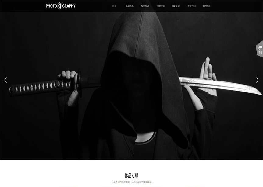 首頁 / 攝影、沖印 / (帶手機(jī)版數(shù)據(jù)同步)自適應(yīng)攝影沖印類黑色攝影網(wǎng)站模板