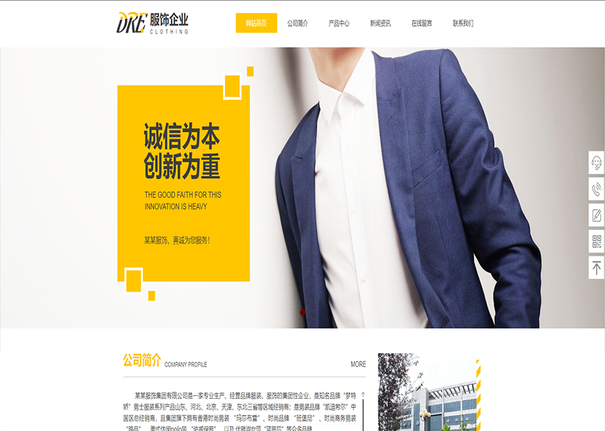 模板名稱:(帶手機版數(shù)據(jù)同步)自適應服裝類黃色通用網站模板