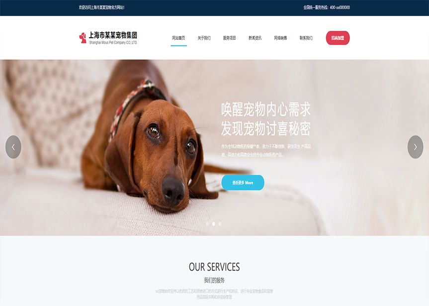 模板名稱:(帶手機版數據同步)自適應寵物類藍色通用網站模板