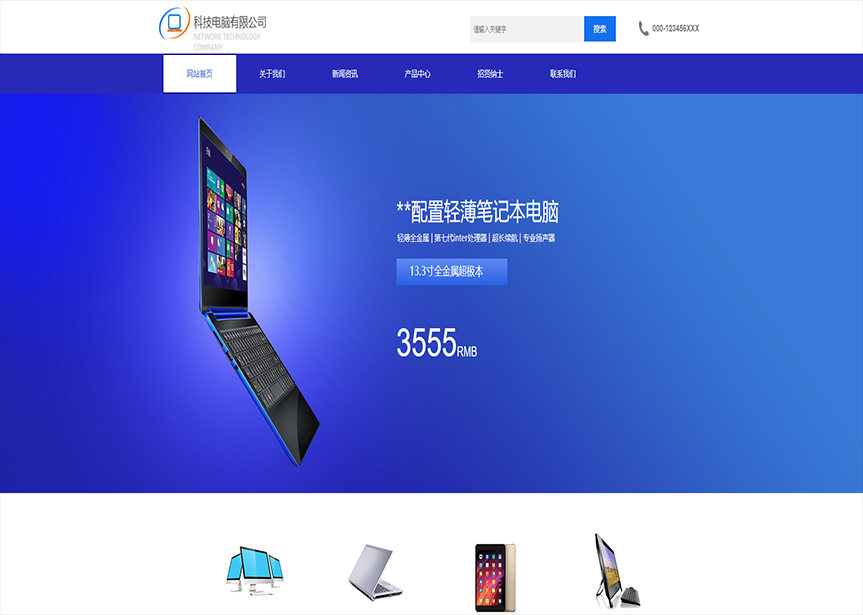 模板名稱:(帶手機(jī)版數(shù)據(jù)同步)自適應(yīng)電腦類藍(lán)色通用網(wǎng)站模板