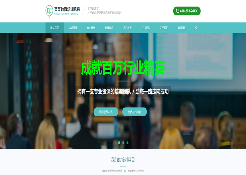 首頁 / 教育、培訓 / (帶手機版數(shù)據(jù)同步)自適應教育培訓類通用網站模板