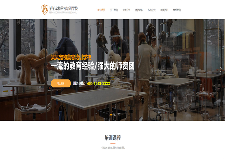 首頁 / 寵物 / (帶手機(jī)版數(shù)據(jù)同步)自適應(yīng)寵物美容培訓(xùn)學(xué)校網(wǎng)站模板