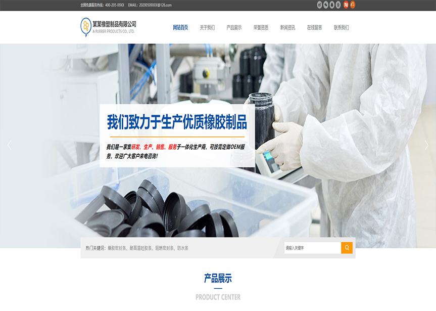 模板名稱:(帶手機版數(shù)據(jù)同步)自適應橡膠塑料制品類藍色通用網(wǎng)站模板