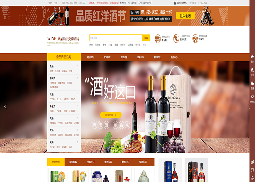 (帶手機版數(shù)據(jù)同步)自適應(yīng)商城類酒品通用網(wǎng)站模板