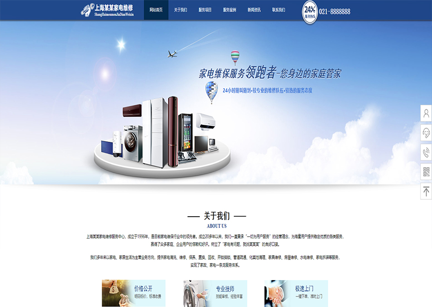 (帶手機(jī)版數(shù)據(jù)同步)自適應(yīng)其他類家電維修通用網(wǎng)站模板