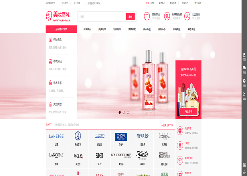 模板名稱:(帶手機(jī)版數(shù)據(jù)同步)自適應(yīng)商城類美妝商城通用網(wǎng)站模板
