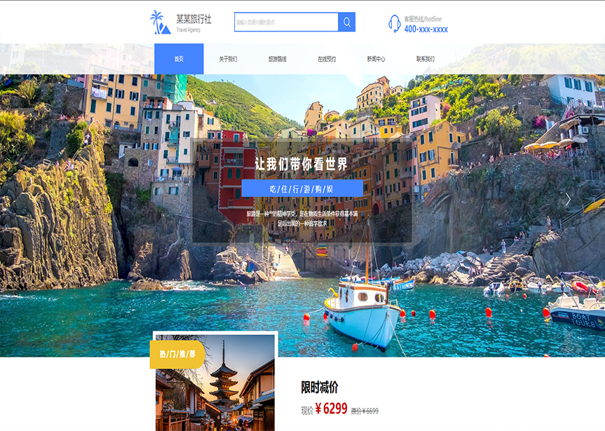 模板名稱:(帶手機(jī)版數(shù)據(jù)同步)自適應(yīng)旅游風(fēng)景類藍(lán)色通用網(wǎng)站模板