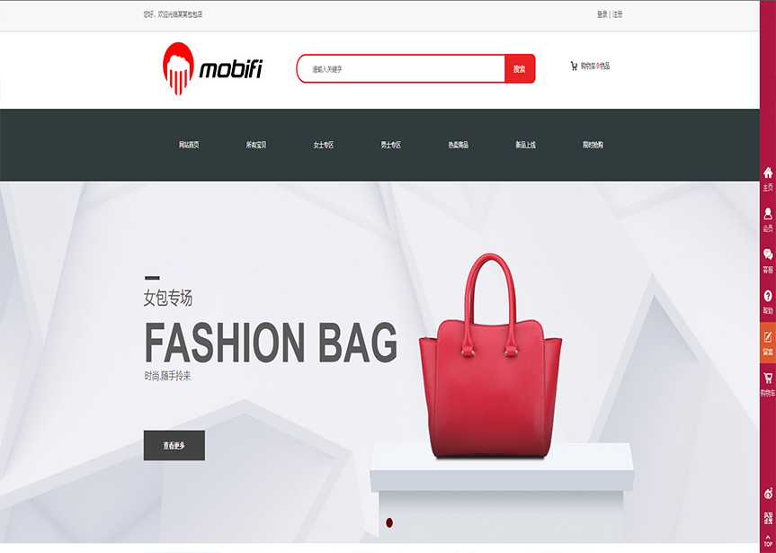 首頁 / 網(wǎng)店 / (帶手機(jī)版數(shù)據(jù)同步)自適應(yīng)商城類包包商城通用網(wǎng)站模板