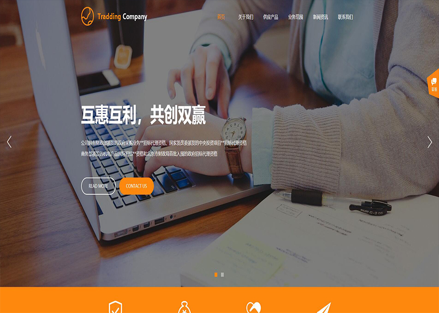 網(wǎng)站模板名稱:(帶手機(jī)版數(shù)據(jù)同步)自適應(yīng)貿(mào)易出口類橙色網(wǎng)站模板