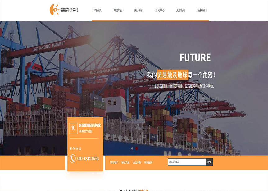 網站模板名稱:(帶手機版數(shù)據(jù)同步)自適應貿易出口類橙色網站模板