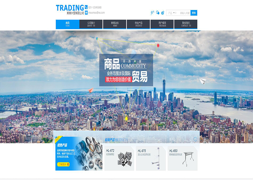 網(wǎng)站模板名稱:(帶手機(jī)版數(shù)據(jù)同步)自適應(yīng)貿(mào)易出口類藍(lán)色網(wǎng)站模板