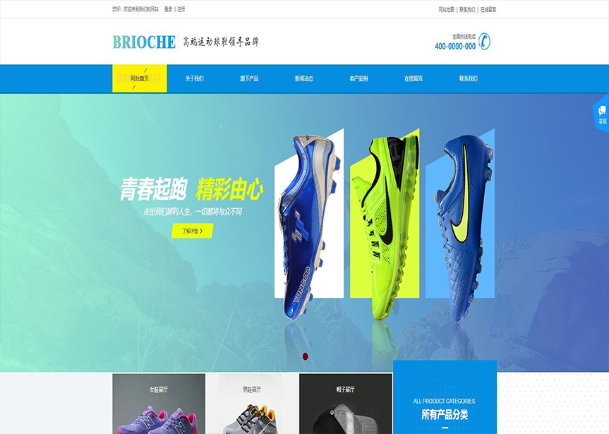 模板名稱:(帶手機版數(shù)據(jù)同步)自適應鞋帽類藍色網(wǎng)站模板