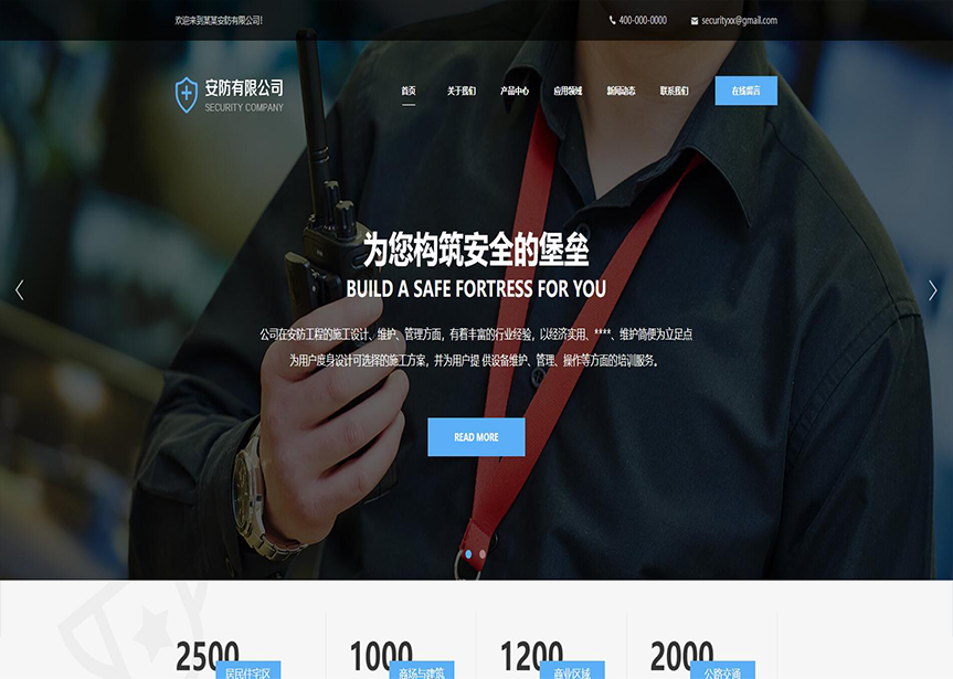 模板名稱:(帶手機版數(shù)據(jù)同步)自適應安防監(jiān)控器材類藍色網(wǎng)站模板