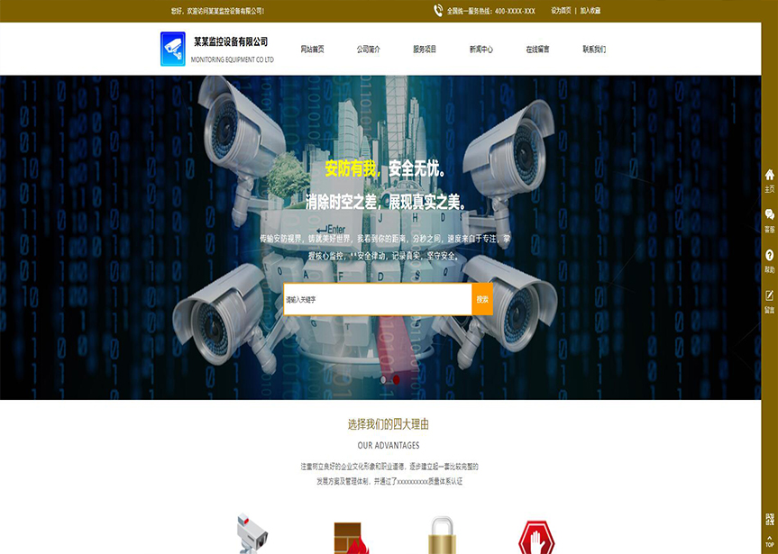 (帶手機版數(shù)據(jù)同步)自適應(yīng)安防監(jiān)控器材類通用網(wǎng)站模板