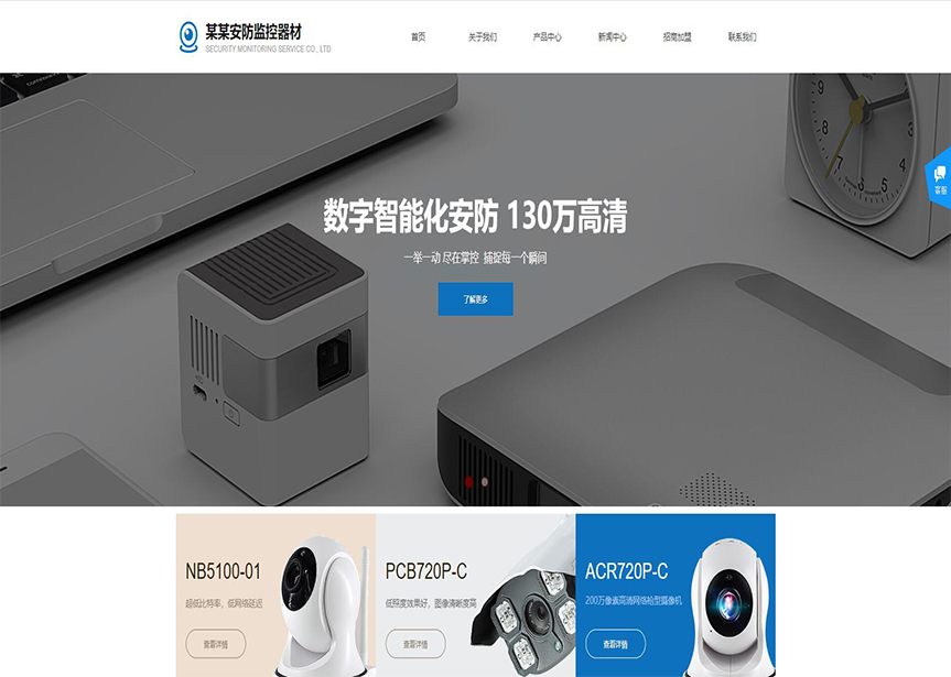 模板名稱:(帶手機版數(shù)據(jù)同步)自適應(yīng)安防監(jiān)控器材類藍色網(wǎng)站模板