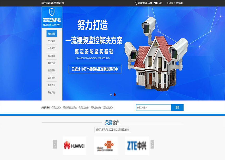 模板名稱(chēng):(帶手機(jī)版數(shù)據(jù)同步)自適應(yīng)安防監(jiān)控器材類(lèi)藍(lán)色網(wǎng)站模板